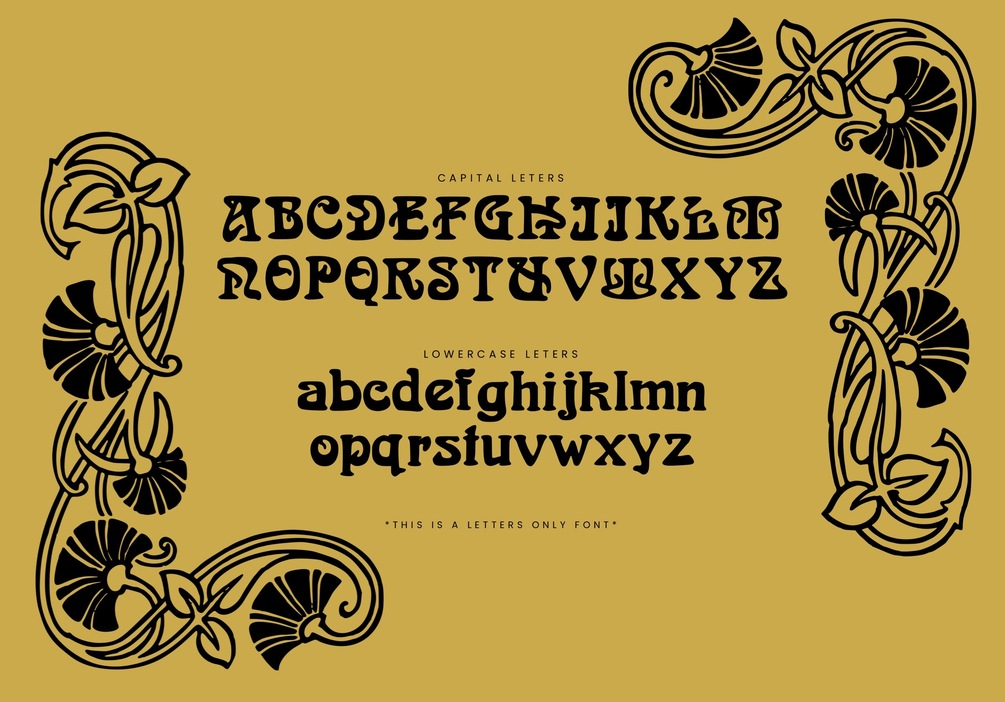 Inspired by the ornate and decorative style of art nouveau, "Tanka" offers a modern twist on the classic aesthetic. Each character has been carefully crafted to capture the essence of this iconic style, with bold lines and delicate flourishes that create a unique and memorable look.